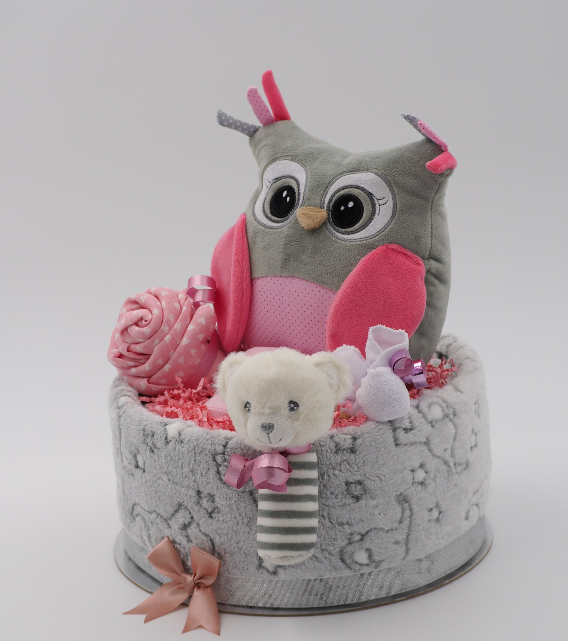 Luiertaart uil roze