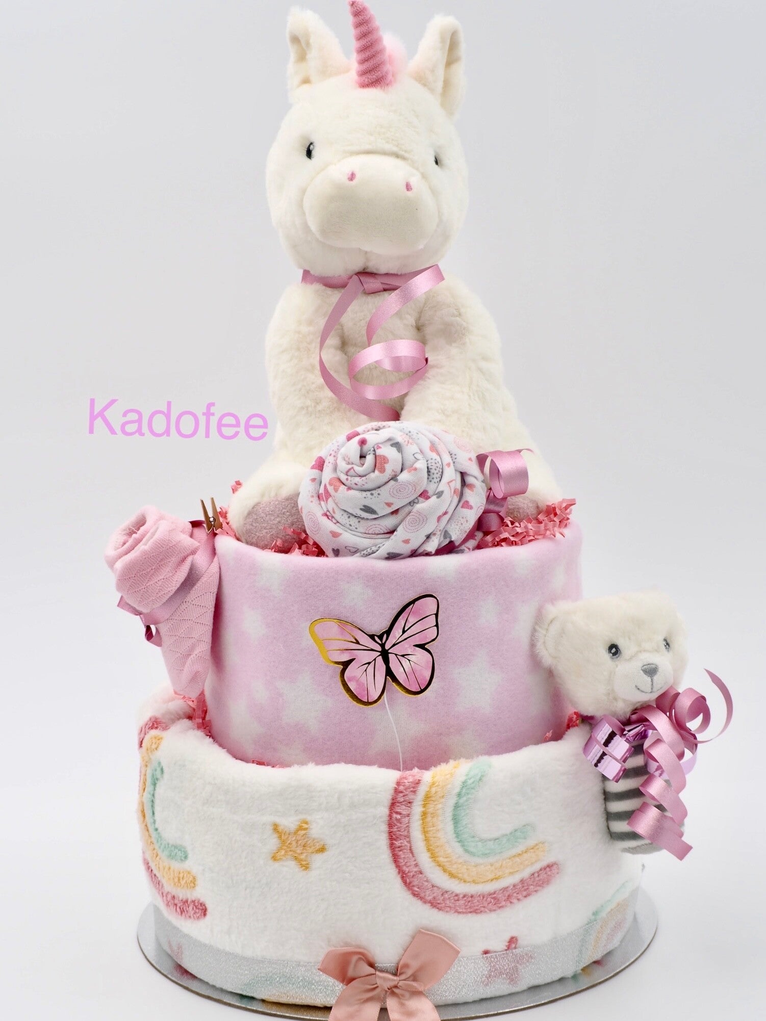 De roze eenhoorn luiertaart is een magische en praktische keuze voor nieuwe ouders. Met zijn schattige ontwerp van een roze eenhoorn zal deze luiertaart zeker de aandacht trekken en een blijvende indruk achterlaten. De luiertaart is met zorg handgemaakt en bevat maat 2 of 3 Pampers luiers, afhankelijk van uw keuze, samen met andere essentiële benodigdheden voor de verzorging van een pasgeboren baby. Of je het nu als cadeau geeft voor een babyshower, kraambezoek of als geschenk voor nieuwe ouders, deze roze eenhoorn luiertaart is een geweldige manier om de magie van de geboorte van een nieuw leven te vieren. Met zijn unieke uitstraling en praktische functie is deze luiertaart een must-have voor elke ouder die op zoek is naar iets speciaals voor hun kleintje.